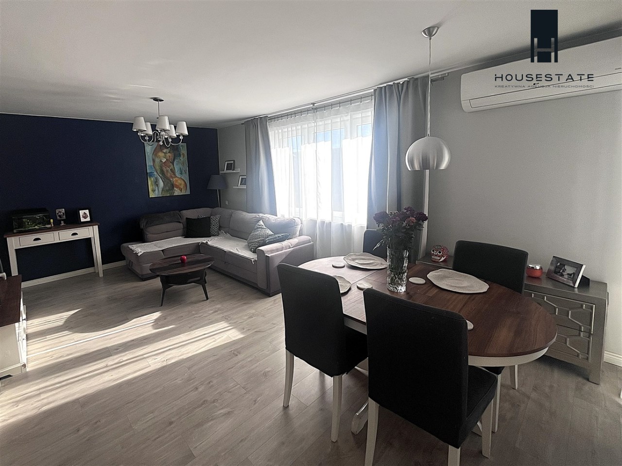 W salonie na piętrze zamontowana klimatyzacja.