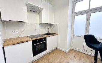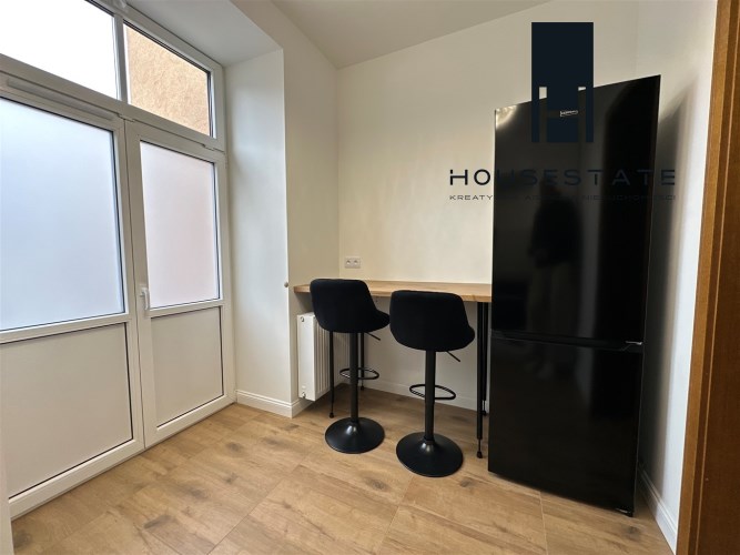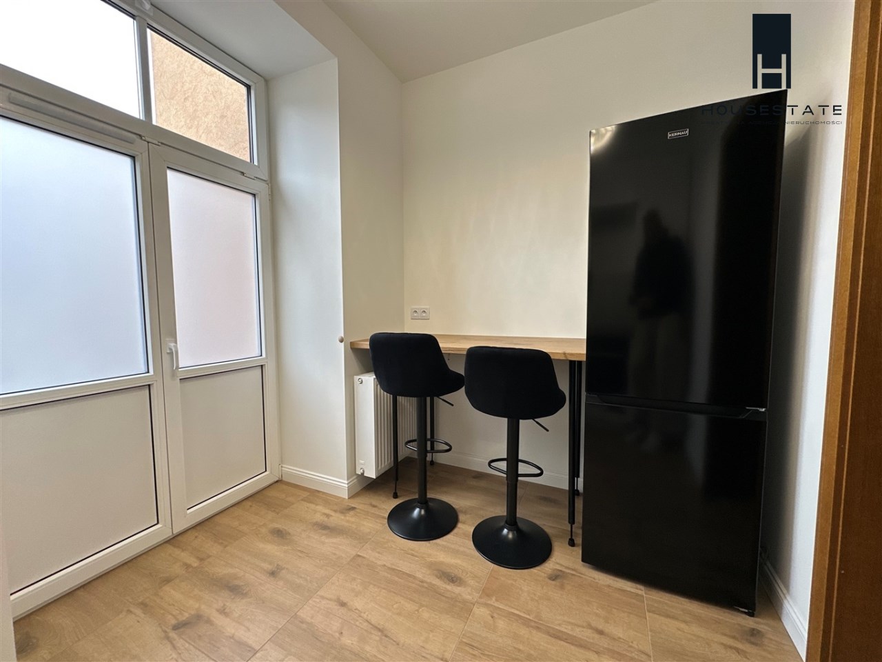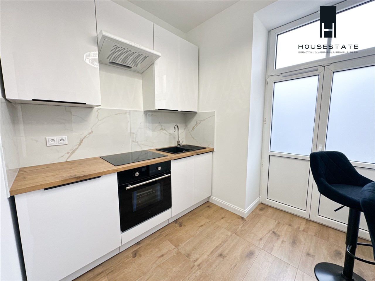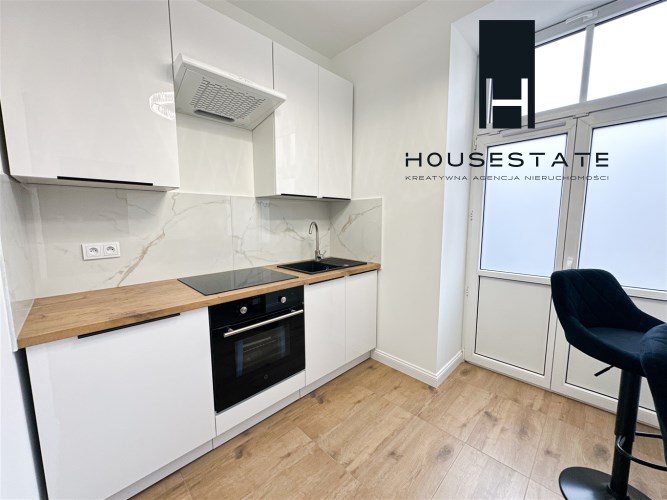 Kuchnia z pełnym wyposażeniem (zmywarka, kuchenka, piekarnik) oraz wyjściem na balkon